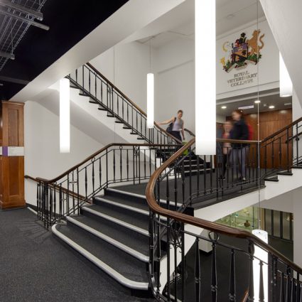 The aim of this project was to enhance and augment the teaching, learning, social, study, research and support office space at the RVC’s Camden campus following expansion of student numbers as well as addressing failings with the existing Hobday building.